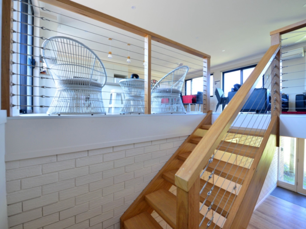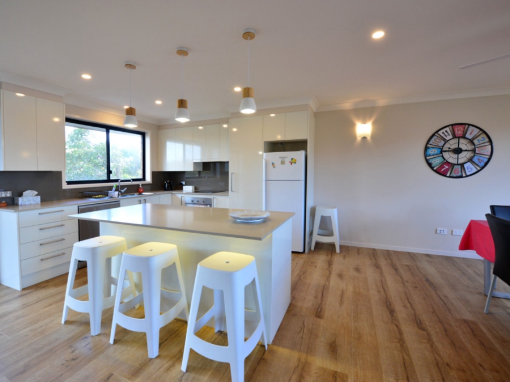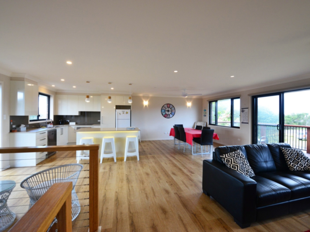 This holiday house has ocean views from the front balcony, great for whale watching or a quick surf check, it is ideal for a holiday with the entire family.